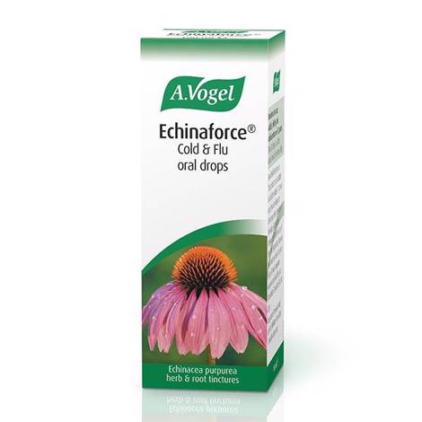 One dose (20 drops) contains the tinctures of: Fresh Echinacea herb 614 mg (Echinacea purpurea (L.) Moench) (1:12–13) Extraction solvent: Ethanol 65% V/V Fresh Echinacea root 32 mg (Echinacea purpurea (L.) Moench) (1:11–12) Extraction solvent: Ethanol 65% V/V 1 ml of Echinaforce Cold & Flu oral drops is equivalent to 28 drops.