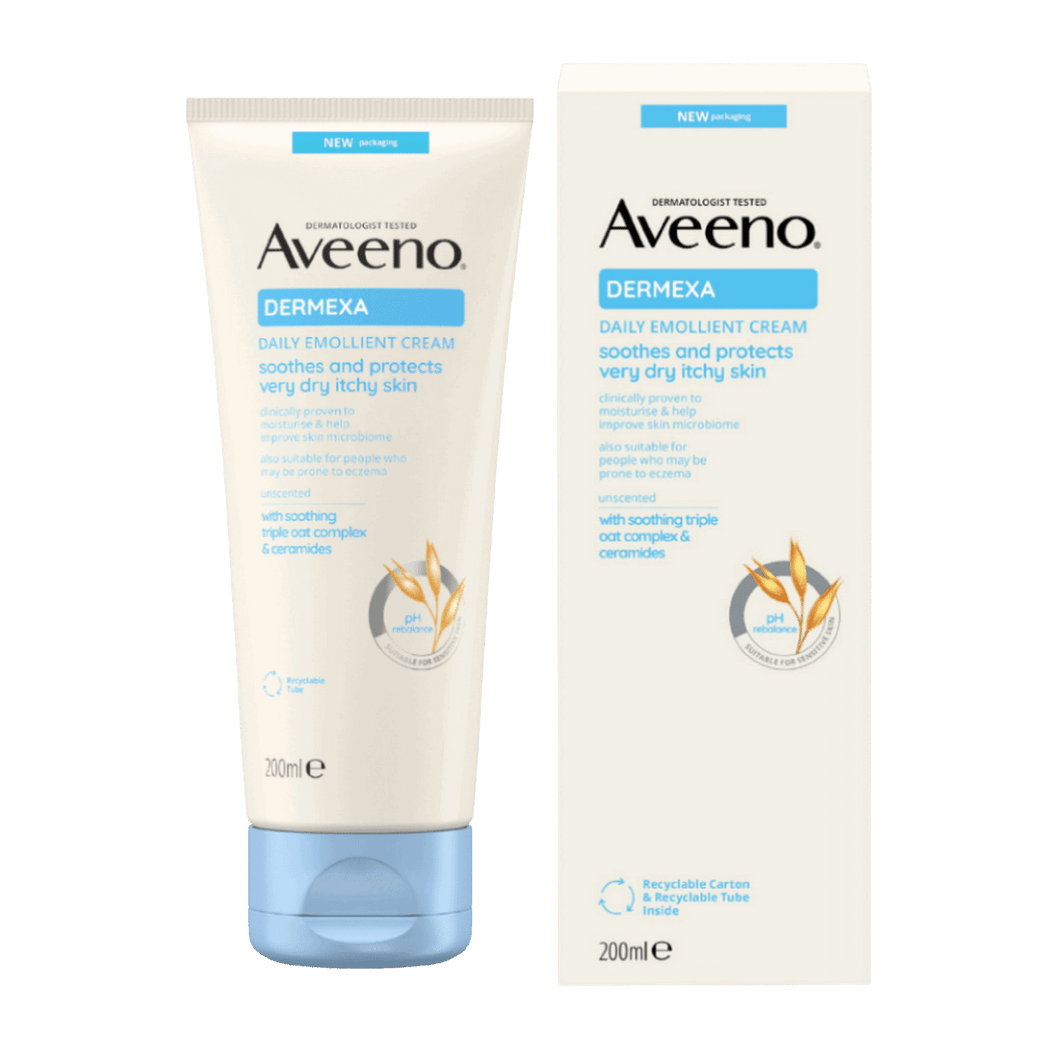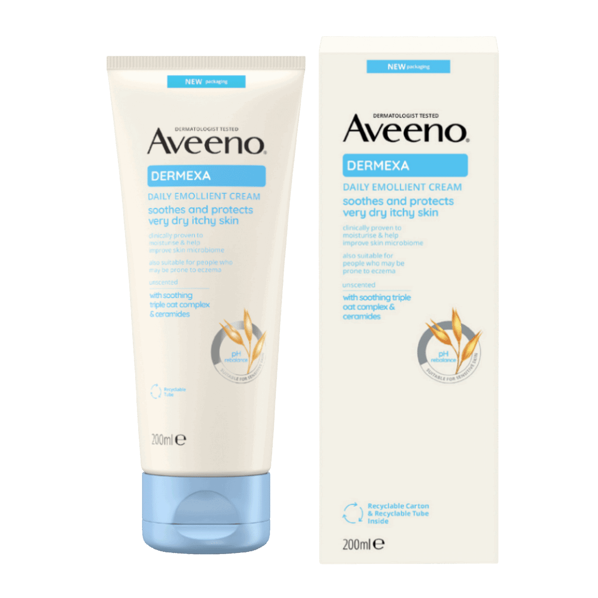 Aveeno’s new Dermexa Daily Emollient Cream is a specially formulated moisturizer made with skin-friendly ingredients, like ceramides and colloidal oatmeal.