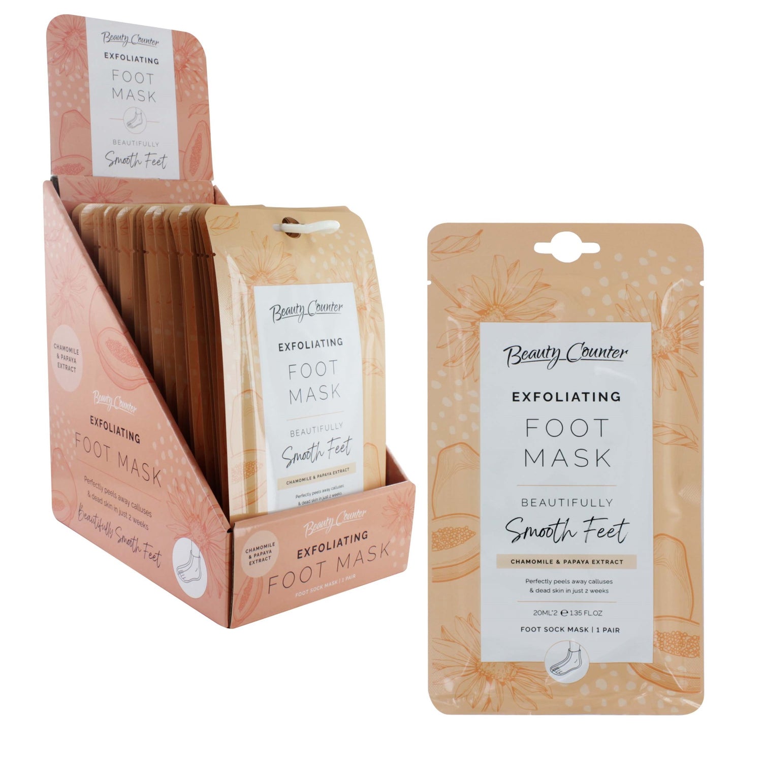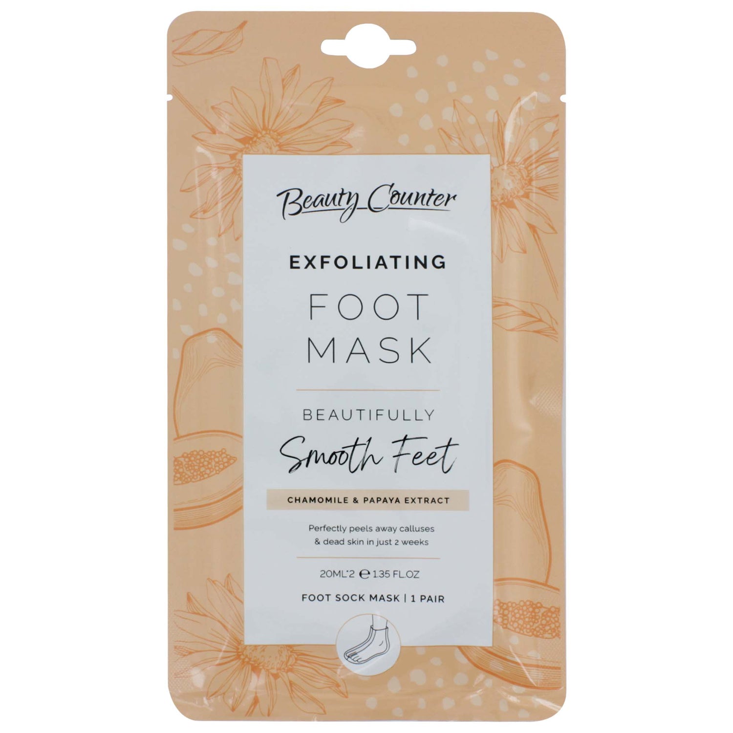 Beauty Counter Exfoliating Foot Mask is a sock-type foot exfoliating mask with Papaya Extract. Calluses start peeling off in 4 to 7 days after use. Nearly all calluses will be removed in a further 3 to 5 days depending on their thickness. Do not use a callus remover or pick on calluses when they start peeling off.