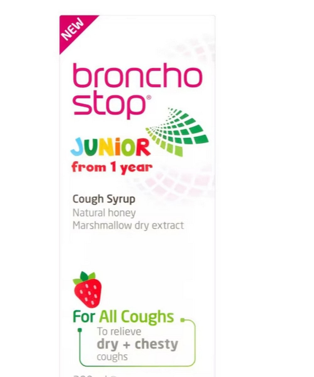 Bronchostop Junior from 1 year + to relieve dry and chesty coughs.