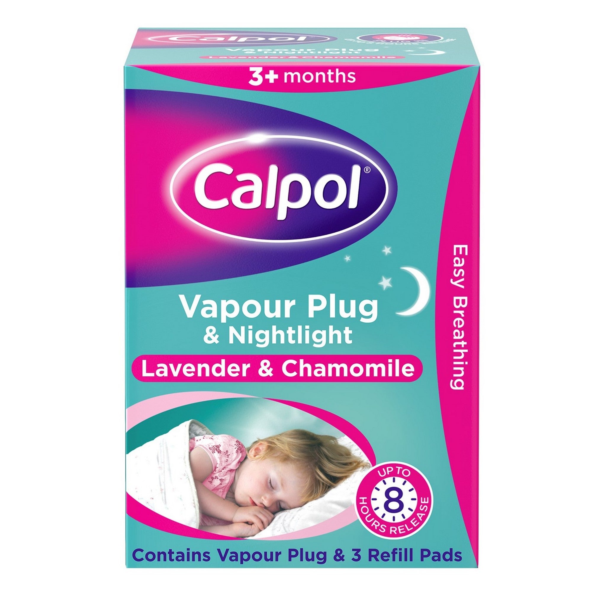 Calpol Vapour Plug and Nightlight is an electrical plug-in device that emits lavender and chamomile vapours to soothe and comfort babies and children helping to promote a relaxing environment. The nightlight emits a soft blue light to help comfort your child and guide you in the room so that you don't disturb your sleeping child. This product helps clear and ease breathing, to aid a restful night’s sleep.
