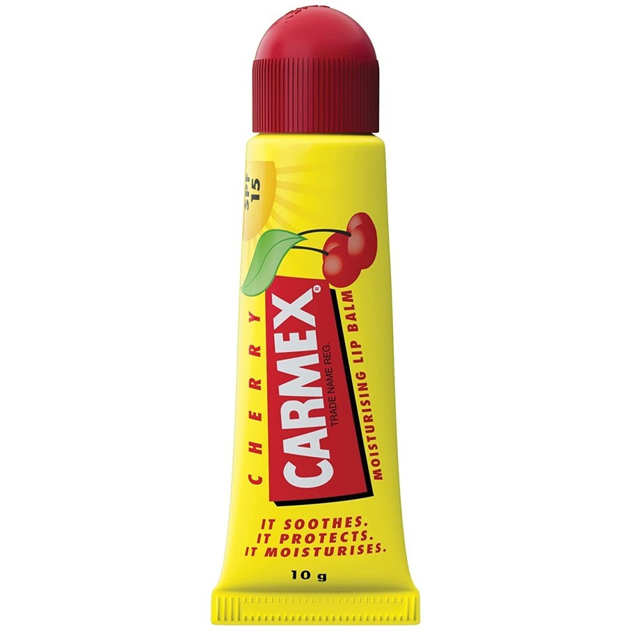 Cherry Carmex moisturizing lip balm gently nourishes and cools dry, painful chapped lips.