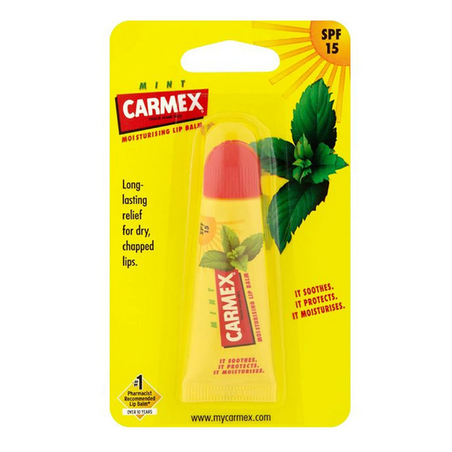 Carmex Mint Moisturising Lip Balm has been formulated to provide instant relief for cracked, tender lips.