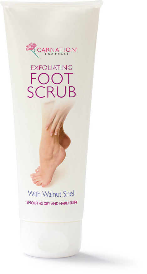 Carnation Exfoliating Foot scrub helps to smooth dry and hard skin. The ingredients walnut shell and mineral oils work be removing rough, hard skin to leave your foot feeling moisturise and soft.