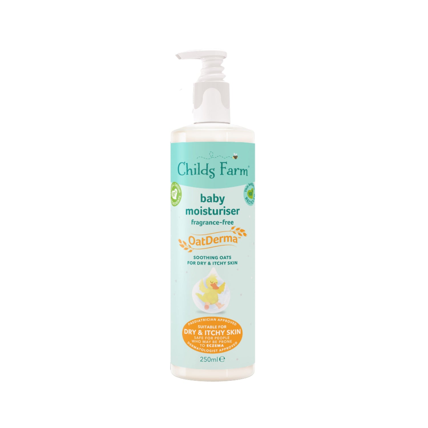 The key ingredient in this range is colloidal oatmeal, sustainably sourced from Finland. This oatmeal is rich in beta-glucan and avenanthramides, which are proven to soothe and support delicate skin. Moisturising your baby’s skin is such an important part of their routine, particularly if they have dry skin. It’s also a great way to bond with your little one. We recommend applying our OatDerma™ moisturiser at least 1-2 times a day or whenever you feel it necessary. Particularly dry patches may need extra applications throughout the day.