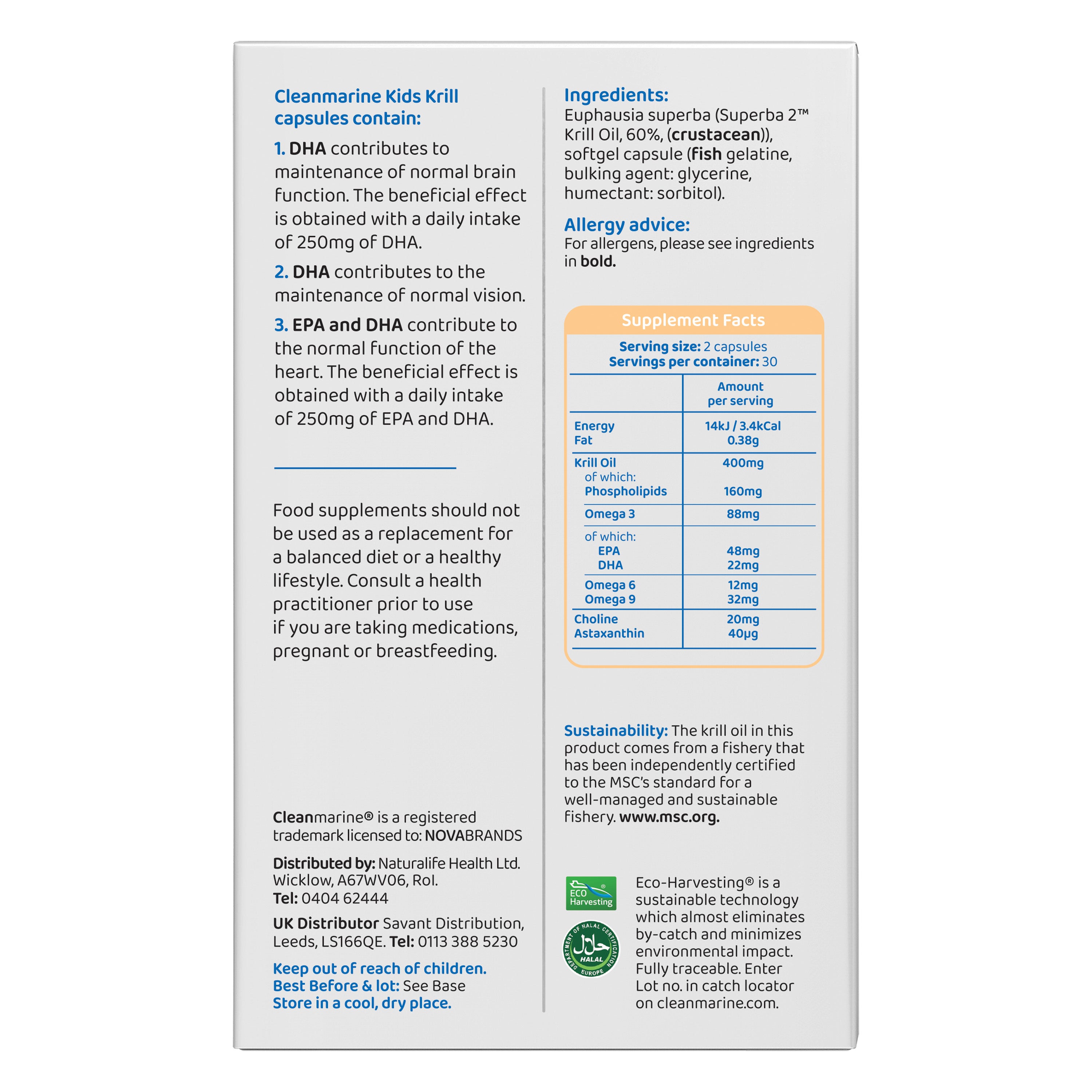 Making sure your child eats a balanced diet and gets enough Omega 3 every day can be quite a challenge, especially with fussy little eaters! Luckily each kid’s sized Cleanmarine® capsule is packed with a potent form of Omega 3 EPA and DHA known as ‘phospholipids’, which have been shown to be highly effective even when taking lower levels compared to fish oils.