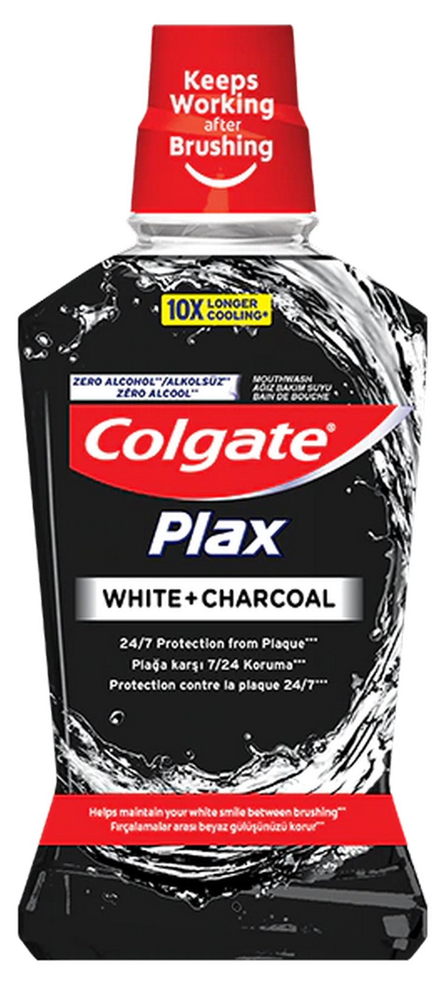 Colgate® Plax Charcoal 500ml Mouthwash provides advanced stain-protection power and long-lasting freshness. It is a clinically proven, 100% alcohol-free anti-germ mouthwash that offers 12-in-1 benefits, as well as 24/7 protection from plaque. Colgate® Plax Charcoal is formulated with stain prevention actives which inhibit stain formation on teeth therefore keeping teeth whiter for longer, compared to regular mouthwash that does not contain stain prevention actives.