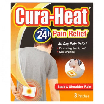 Cura-Heat's penetrating heat action lasts for 12 hours and once removed the pain relief can continue for a further 12 hours, resulting in up to 24hours pain relief.