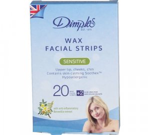 Dimples Wax Facial Strips is a quick and safe way for the removal of unwanted facial hair, keeping the skin smooth for up to 6 weeks. Dimples wax strips are suitable for all skin types even, sensitive skin. Also for underarms and bikini line.