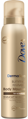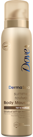 Here’s how to have bronze skin: simply massage Dove DermaSpa Summer Revived Gradual Self-Tan Body Mousse onto clean, dry skin. Build colour day-by-day until the desired tan is achieved, then continue to space the applications to maintain a natural-looking tan. Always make sure to wash your hands after use, and to apply a separate sunscreen product if spending time in the sun.