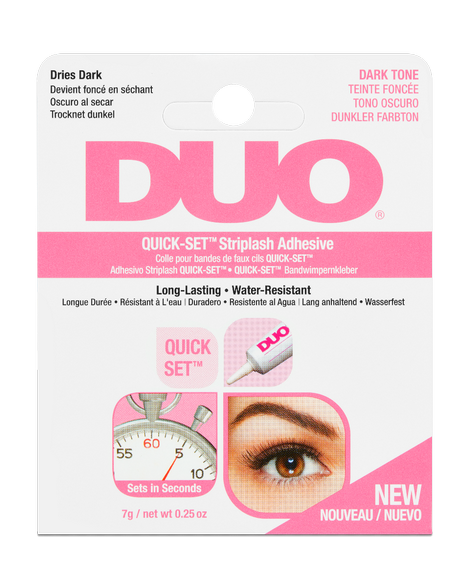 DUO Eyelash Adhesive in Dark is an innovative revolutionary bonding agent which was formulated to blend well with dark eyeliners when applying false eyelashes. After the success of the clear DUO Adhesive, it seemed only natural to create a dark glue. This best selling latex eyelash glue blends in with your brown or black lashes & keeps your eyelashes secure all day & all night long.