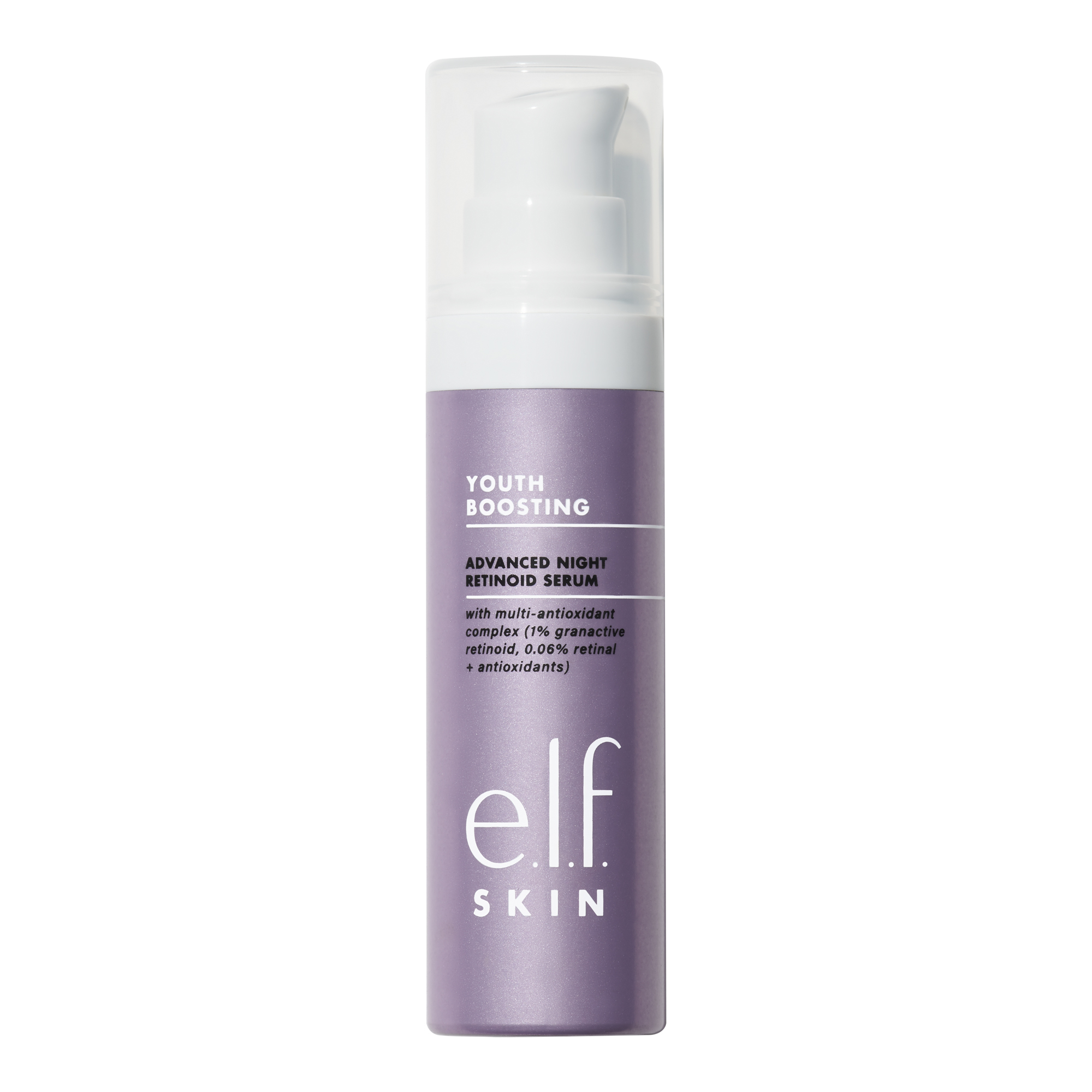 e.l.f Skin Youth Boosting Advanced Night Retinoid Serum is your ultimate weapon against aging, delivering powerful results while you sleep. This anti-aging serum works to reduce the appearance of fine lines and wrinkles, revealing smoother, renewed, and radiant skin. With a potent 1% granactive retinoid and antioxidants, it's formulated to deliver visible improvements in just four weeks.