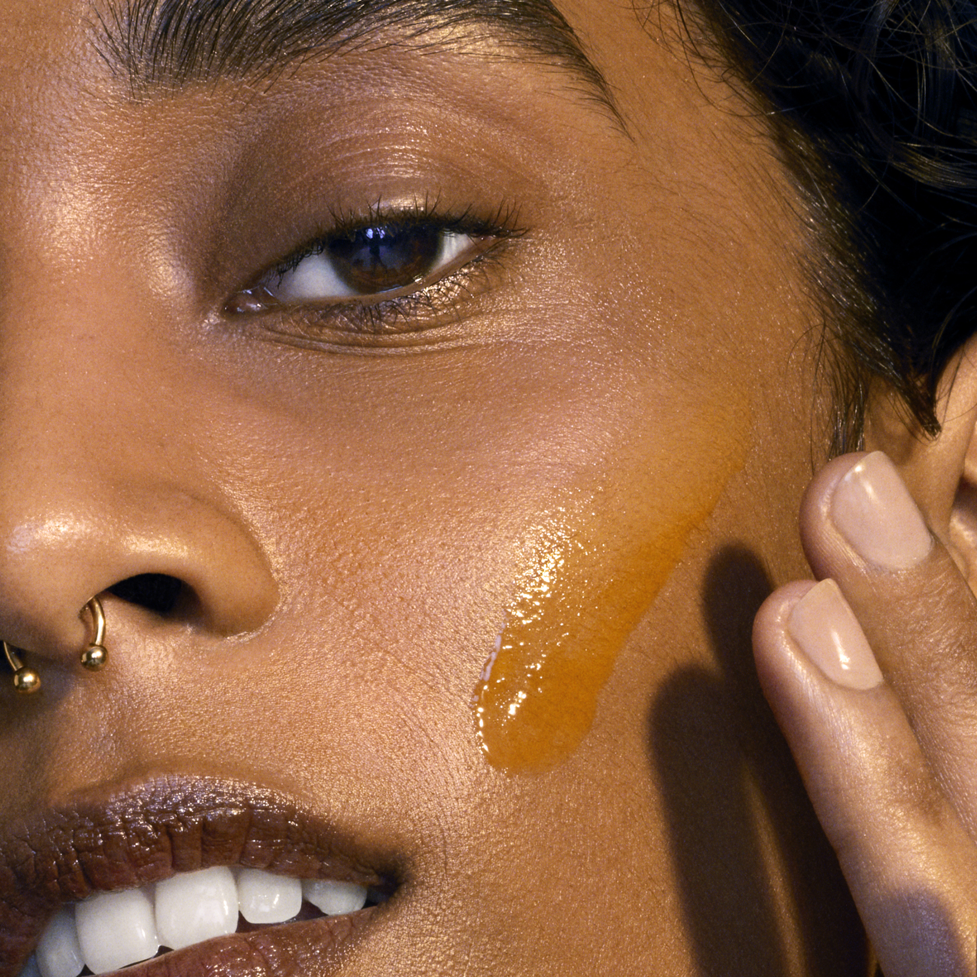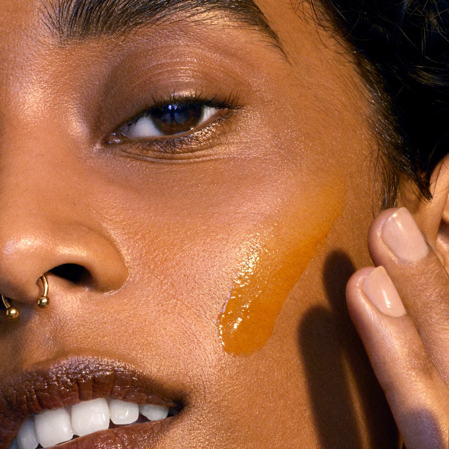 Note: the amber color of the formula is a naturally occurring hue due to the potency of the retinoid complex. It will blend into the skin after application.