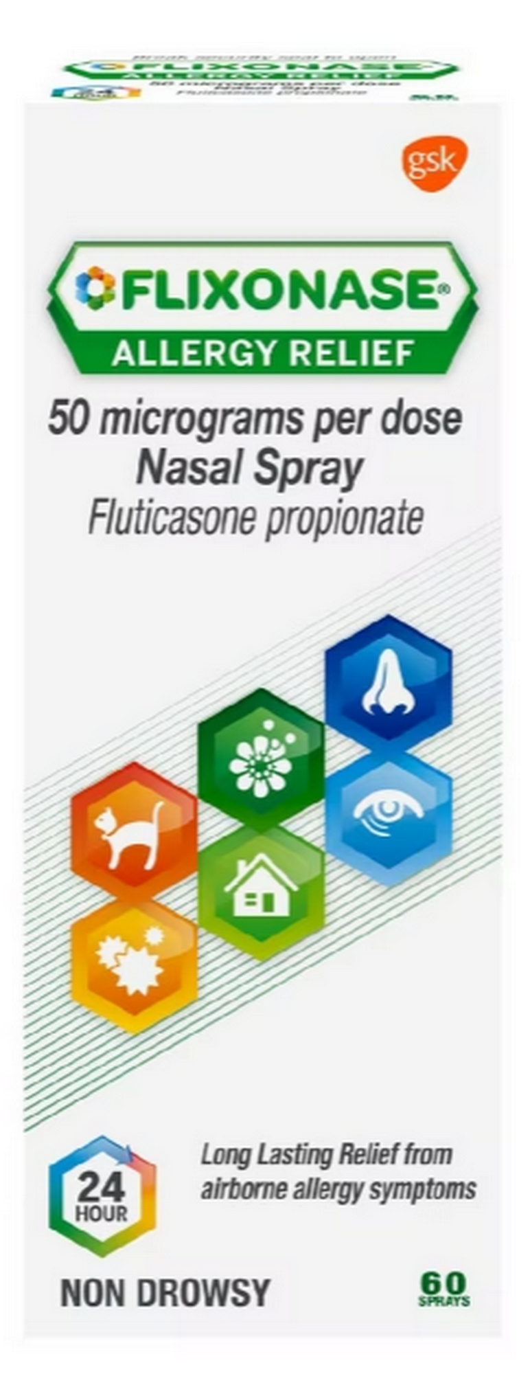 Flixonase Allergy Relief is a nasal spray that is used to treat the symptoms of airborne allergies including pollen, pets and dust mites, even when the symptoms are made worse by smoke and pollution.