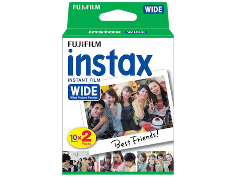 The twin-pack of Fujifilm Instax Wide Instant Film contains 20 total sheets of instant colour film. This film features vivid colour reproduction with natural skin tones, as well as a refined grain structure that provides high image sharpness and clarity as well as a versatile ISO 800 film speed for use with a wide variety of subjects. Each sheet of film produces a 2.4 x 3.9" glossy image area that is surrounded by a white border.