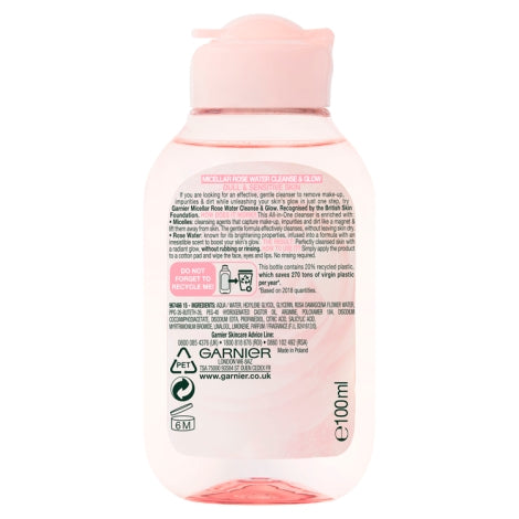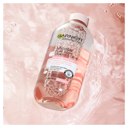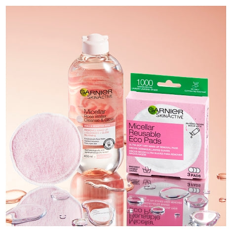 Garnier Micellar Rose Water Cleanse & Glow - the gentle and effective way to cleanse your skin & remove makeup in 1 cotton pad Unique Micellar technology collects dirt, impurities and make-up like a magnet to leave skin cleansed.