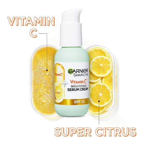 Garnier's Vitamin C is powered by Green Science to pair super citrus extracts with Vitamin C, a powerful dermatological active, for clear, even-looking skin that's luminous.