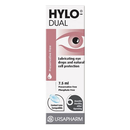 Hylo-Dual Preservative Free Eye Drops are for use on dry eyes caused by allergies. It also helps to stop itching and burning.