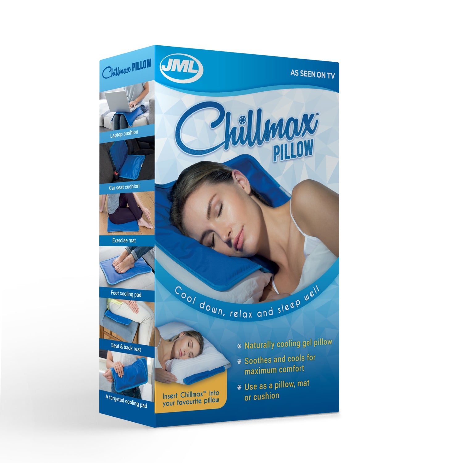 For a more restful night's sleep, or a cooler, more comfortable sleep, The JML Chillmax Pillow is the answer. Chillmax Pillow's inner gel reacts to your body temperature to absorb excess heat, drawing it away from your skin to produce a natural cooling effect for up to three hours. Chillmax can be inserted into your favourite pillowcase or cushion or placed on top for maximum cooling.