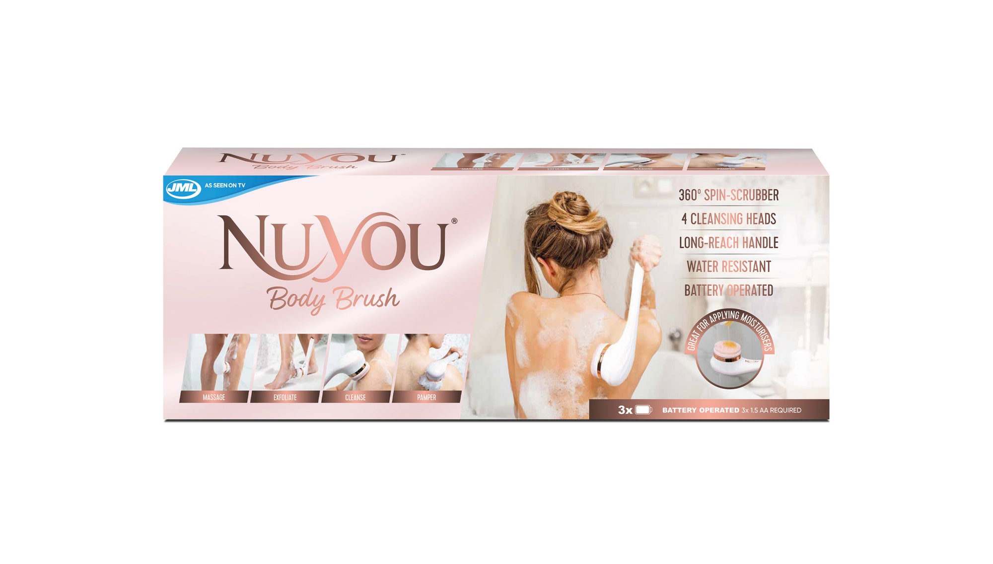 NuYou Body Brush gives you an extraordinary, full-body, rejuvenating spa experience in your own shower. NuYou Body Brush will leave your skin clean, exfoliated, massaged and pampered. With four, easily changeable multifunction heads that each offer a different kind of skin treatment, you can give your skin a head-to-toe spa-like experience in your own shower and, thanks to the extra-long handle, you can reach every part of your body with ease. There’s even a hole in the handle so it can hang inside your shower between uses and it’s always on-hand and ready to go!