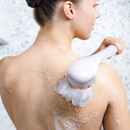 4 heads to cleanse, exfoliate, massage and pamper: NuYou Body Brush comes with 4 multifunction heads: The soft scrubber is made from ultra-hygienic silicone for gentle exfoliation and cleansing. You can use it to apply creams and moisturisers to hard-to-reach areas like you're back and between your shoulders. The soft bristle head is great for exfoliation, deep cleaning and an invigorating full body massage to soothe and rejuvenate tired muscles. The pumice head is perfect for reaching, cleaning and exfoliating the balls and heels of your feet, helping to soften hard, dry skin, callouses and corns. The Loofah head Lets you pamper yourself with a gentle full-body wash that will leave you feeling like you've left the spa after every shower.