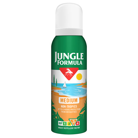 With an insect repellent factor of 3, Jungle Formula Aerosol Medium 20% Diet provides up to 6 hours of protection from mosquitoes and biting insects. Ozone friendly, the mosquito spray repellent contains 20% Diet for medium protection. It is a suitable insect spray travel companion ideal for home and travel to short haul destinations.
