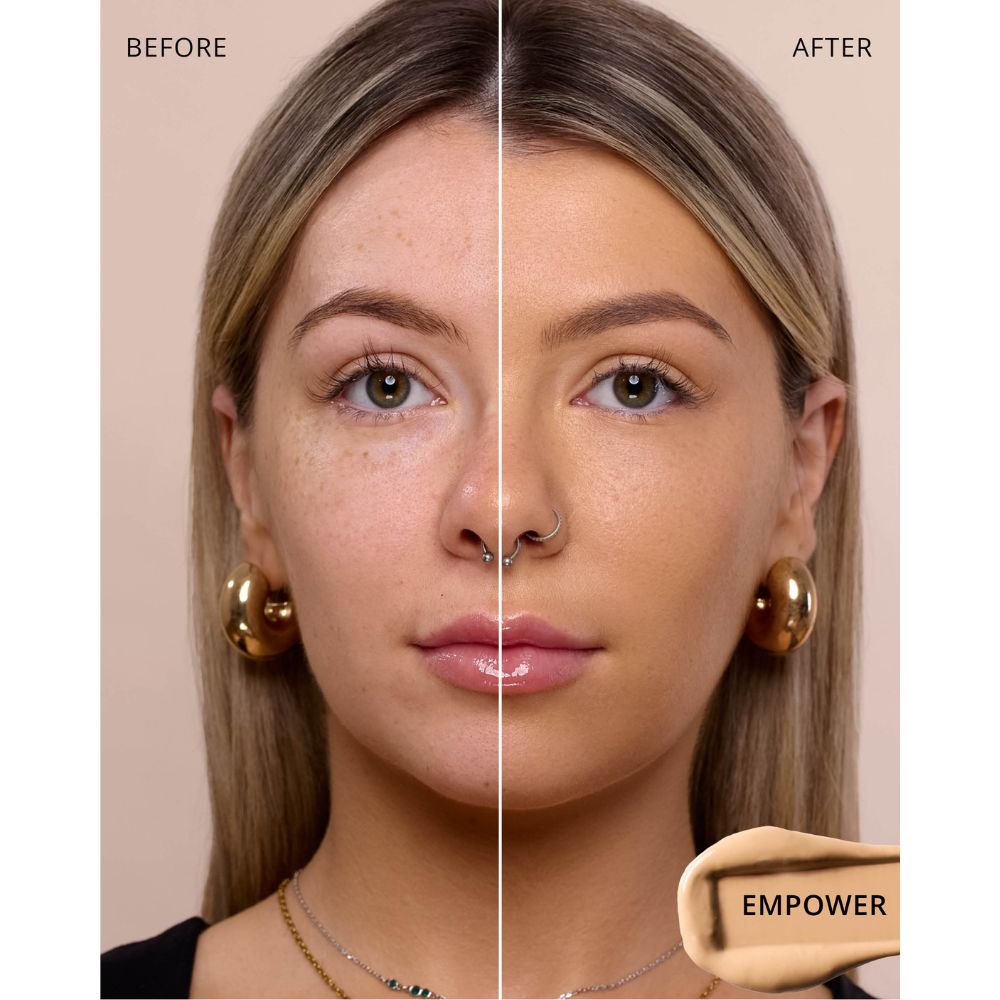 The foundation features flexible film technology, enhancing durability and keeping your makeup flawless and unbreakable as your skin moves. With a long-wear formula that resists sebum absorption, Aura Skin ensures your complexion stays radiant throughout the day. Enriched with Rejuvelac-Quinoa, it promotes collagen production, giving your skin a healthy, refreshed glow and leaving it feeling better than ever - even after a full day's wear. Plus, it's non-comedogenic, ensuring your skin remains balanced and your pores clog-free.