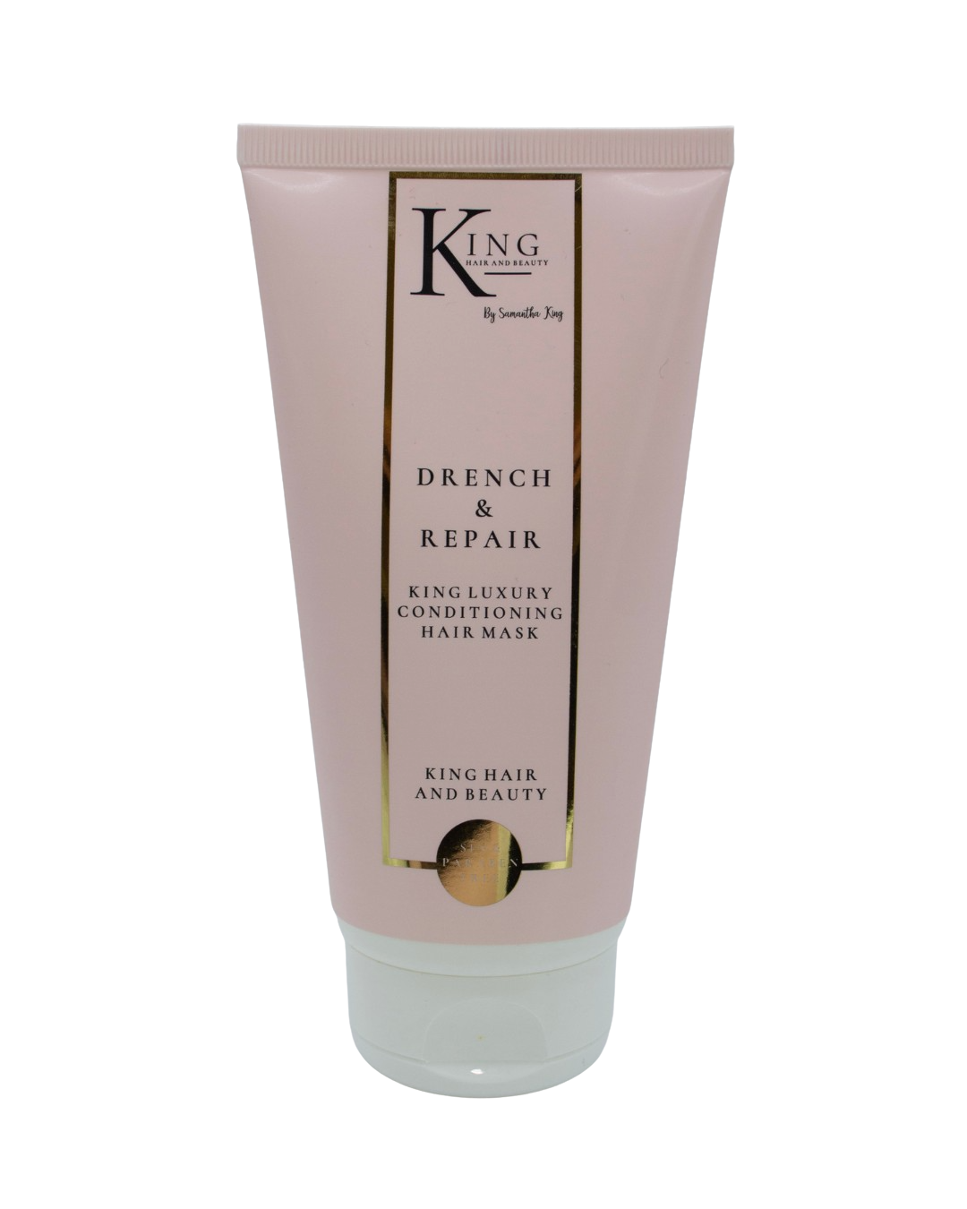 King Luxury Shampoo - Drench & Repair will ensure a little indulgence on every hair wash, gently cleansing and nourishing. Our formula is enriched with time-tested glycerine and hydrolyzed wheat protein. which helps to saturate the hair with moisture, detangle and strengthen from the inside out. King Luxury Conditioning Hair Mask – Drench & Repair, will deeply nourish and repair the hair leaving it soft and manageable. Enriched with hydrolyzed silk which actively strengthens and nourishes the hair helping to restore health and shine. This combined with the seductive aroma will drench your hair in moisture and repair. Drench & Repair King Luxury Conditioning
