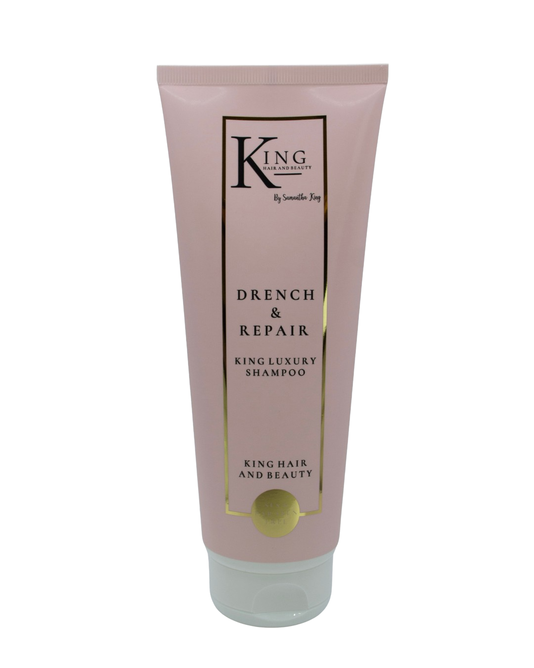 King Luxury Shampoo - Drench & Repair will ensure a little indulgence on every hair wash, gently cleansing and nourishing. Our formula is enriched with time-tested glycerine and hydrolyzed wheat protein. which helps to saturate the hair with moisture, detangle and strengthen from the inside out. King Luxury Conditioning Hair Mask – Drench & Repair, will deeply nourish and repair the hair leaving it soft and manageable. Enriched with hydrolyzed silk which actively strengthens and nourishes the hair helping to restore health and shine. This combined with the seductive aroma will drench your hair in moisture and repair. Drench & Repair King Luxury Conditioning. Hair Mask is suitable for all hair types.