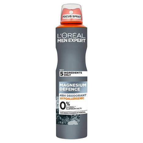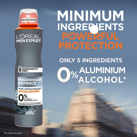 L'Oreal Men Expert Magnesium Defence Hypoallergenic 48H Deodorant 250ml. 0% Alcohol / 0% Aluminium Salts