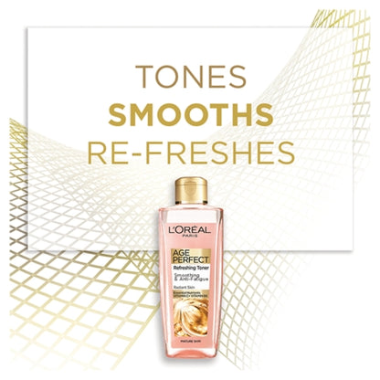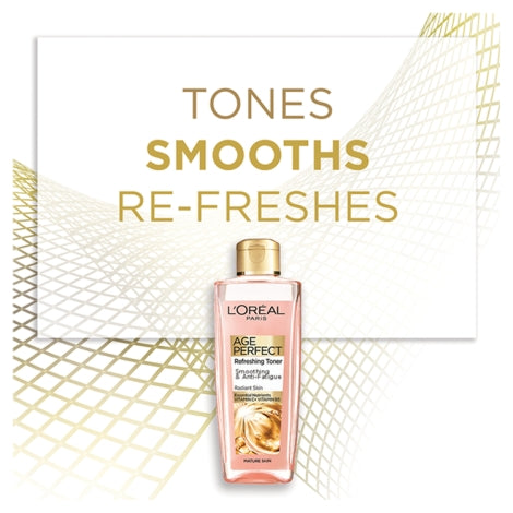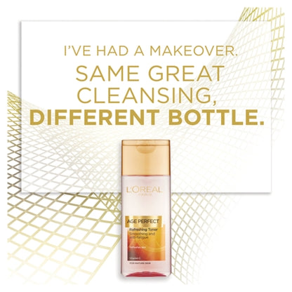 L'Oréal Paris Dermo-Expertise Age Perfect Refreshing Toner has been developed specifically for mature skin. Effortless make-up removal, it cleanses and refreshes the skin. A real wake-up call, it invigorates the feel of the skin and softens its appearance. L'Oréal Paris Age Perfect Refreshing Toner is enriched with Vitamin C and magnesium.