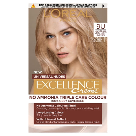 We believe your hair deserve a routine that cares about your hair as much as the colour. New Excellence Universal Nudes gives you Triple Care Colour and 100% grey coverage now with no ammonia.
