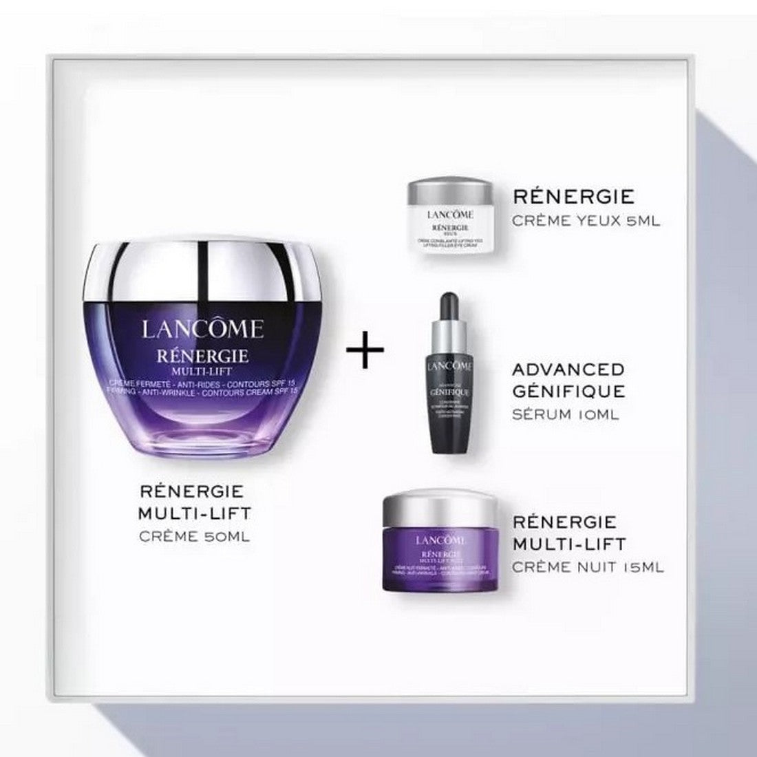 Discover four of Lancôme most popular products with this Rénergie Multi Lift Skincare Ultra Cream Gift Set. Suitable for all skin types, the formulas help to visibly plump, revitalize, hydrate and protect your skin.