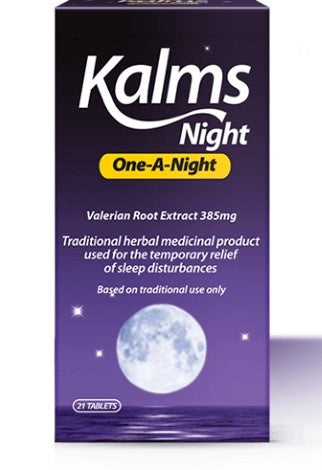 - Kalms Night contains Valerian, traditionally used for its sedative action which may be particularly helpful for sleeping issues