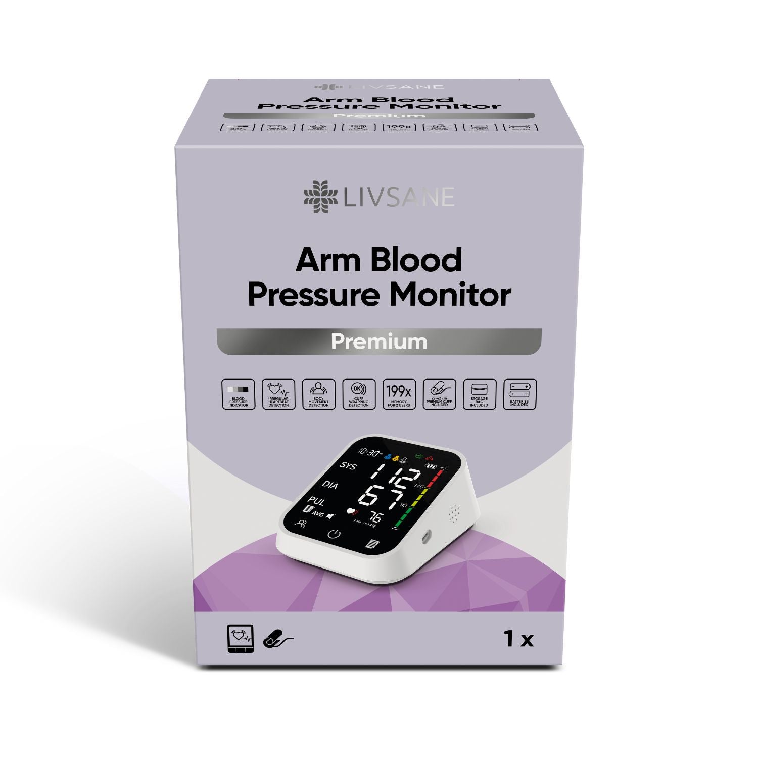 The LIVSANE Premium Blood Pressure Monitor offers advanced, reliable monitoring of blood pressure and pulse in the comfort of your home. Designed for ease of use and accuracy, it features automatic measurement on the upper arm and a clear LED display. The monitor includes enhanced detection features such as irregular heartbeat, body movement, and cuff positioning. With memory for up to 199 readings per user (two users total), it’s ideal for ongoing health tracking. Operates via batteries or a USB-C cable for added convenience.
