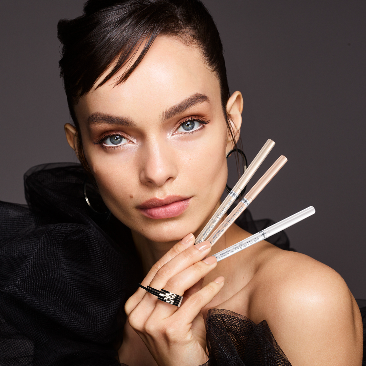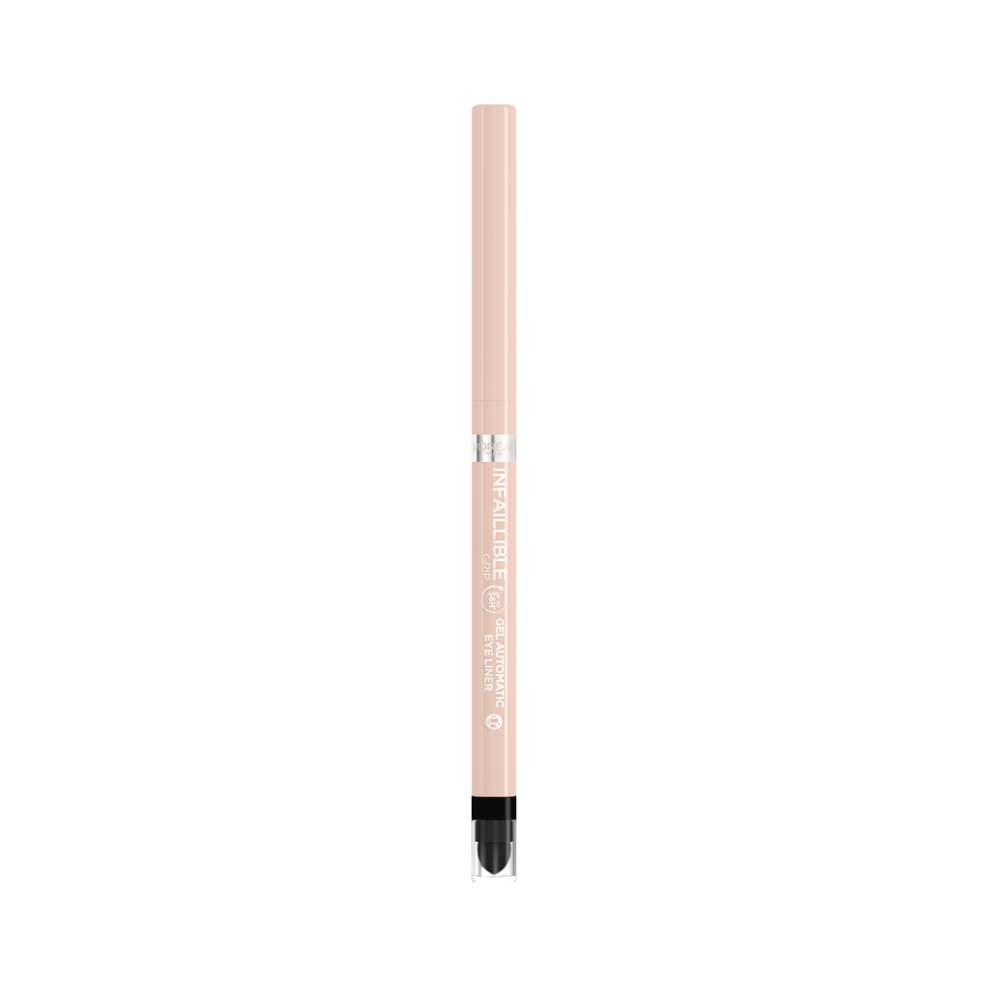 The L'Oréal Paris Infallible Grip 36 H eyeliner is a retractable gel pencil, with an incorporated pencil sharpener. Its special gel formula lasts all day. * This eyeliner is water-resistant, smudge-proof and transfer-proof. This eyeliner is available in 2 shades of white to enlarge the eyes: opalescent and polar white