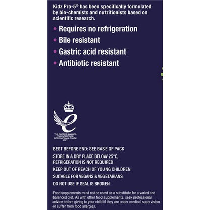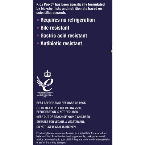 Natures Aid Kidz Pro-5 powder contains a guaranteed 5 billion live organisms, using 8 extensively researched strains of bacteria, including 5 strains of Lactobacillus and Bifidobacterium Infantis.