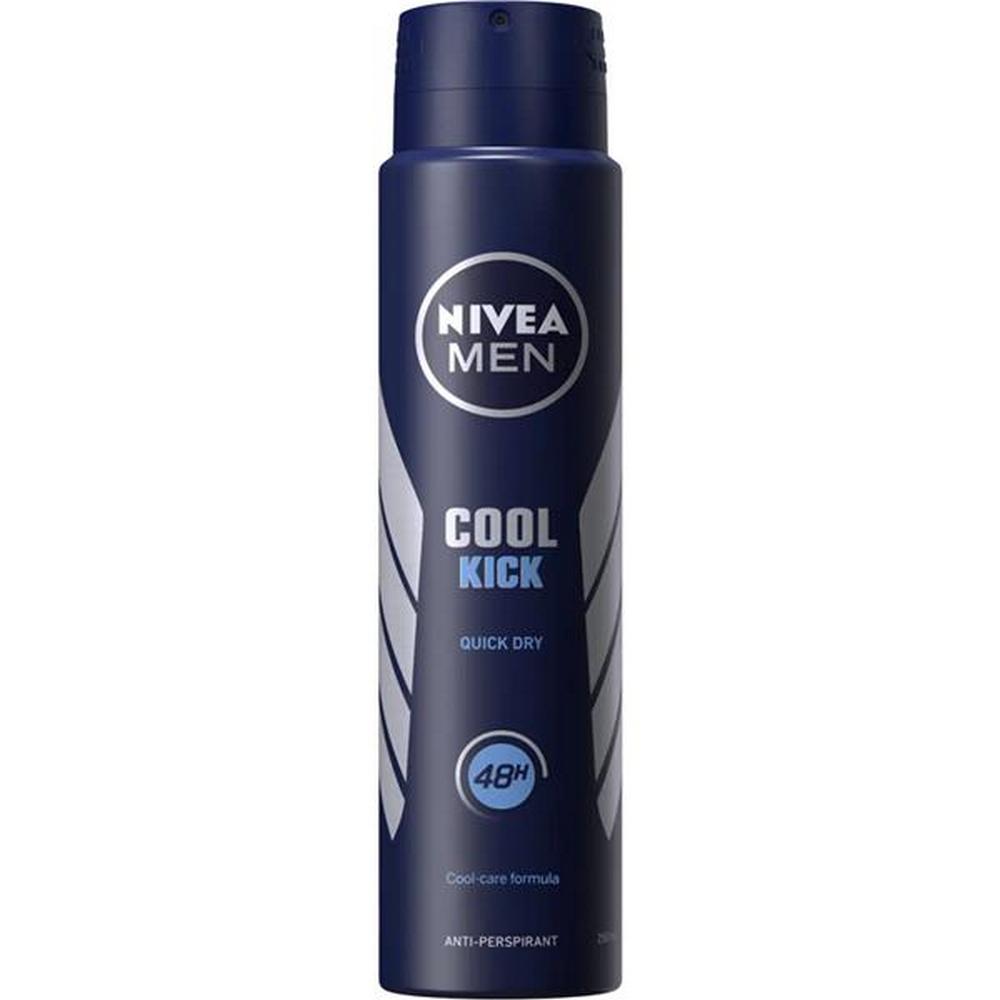 NIVEA MEN Cool Kick anti-perspirant deodorant spray instantly offers you vitalising freshness and gives you 48 hours reliable protection against sweat and body odour. The deodorant combines a fresh and comfortable skin feeling with care for your underarm skin. Invigorating like a marine breeze... salty air with hints of sea grass, citrus scents floating gently on ocean waves...off on an adventure beneath a bright blue sky… A perfect vitalizing freshness designed for men who want to extend the shower experience all day long. (150ml)