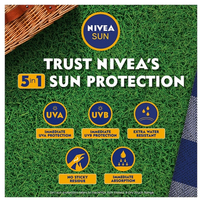 NIVEA SUN Protect & Dry Touch Refreshing Sun Mist provides highly effective and reliable immediate UVA/UVB protection.