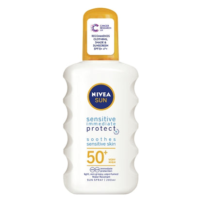 NIVEA SUN Sensitive Immediate Protect Sunscreen Spray soothes sensitive skin. The sunscreen offers reliable UV protection against sun-induced irritations.