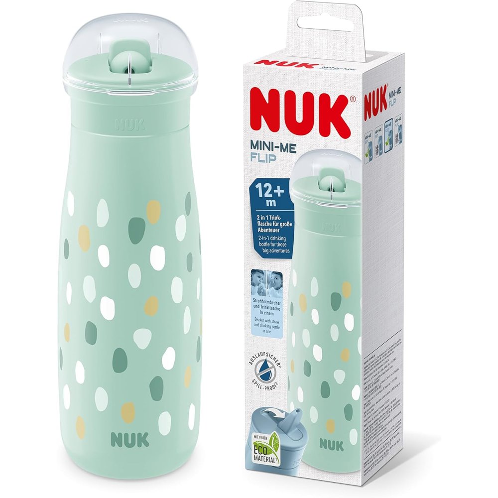 The NUK Mini-Me Flip Cup combines style, sustainability, and practicality—perfect for little hands and big adventures. Made from over 80% natural raw materials*, this durable, shatter-proof bottle is designed to withstand everyday tumbles. The bite-resistant sip top allows children to drink with or without a straw, while the leakproof top and hygienic cap help prevent messes on the go. Easy to take apart and clean, it's also dishwasher-safe and fully compatible with all other Mini-Me range cups and tops.