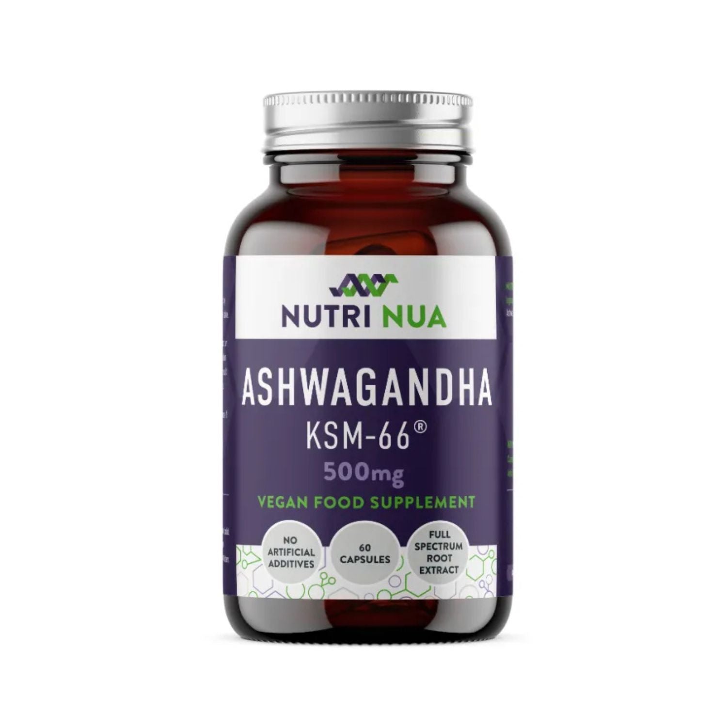 Nutri Nua Ashwagandha KSM-66 contains a premium, full-spectrum root extract of Ashwagandha (Withania somnifera), one of the most researched adaptogens known to support stress resilience, cognitive function, and sleep quality. Each capsule delivers 250mg of clinically studied KSM-66, developed using a traditional extraction process to maintain the natural balance of the root’s active constituents.