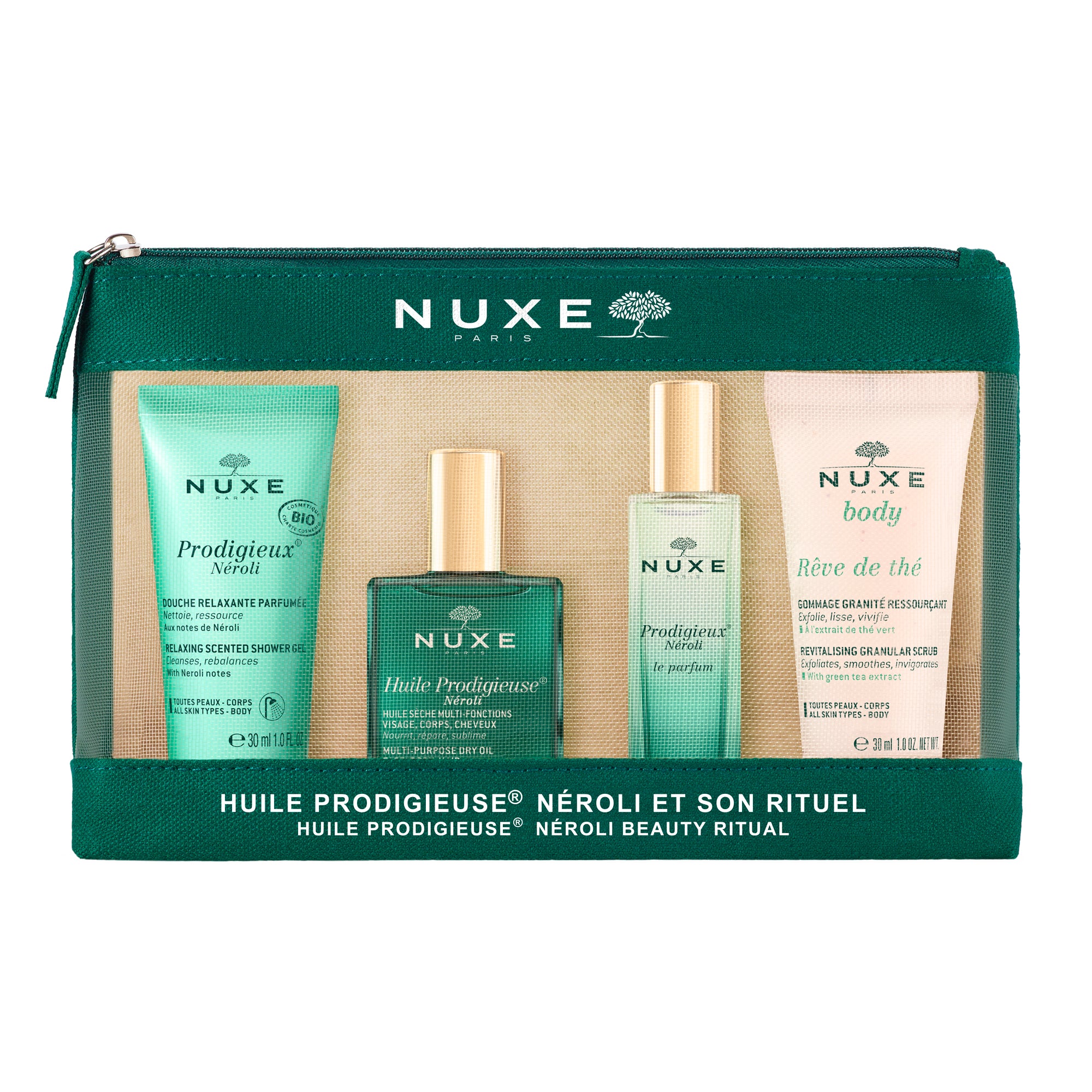 Indulge in a moment of self-care with the NUXE Huile Prodigieuse Neroli Beauty Ritual Set. Featuring four formulas, the collection pampers the skin and senses with sumptuous textures and refreshing fragrances.