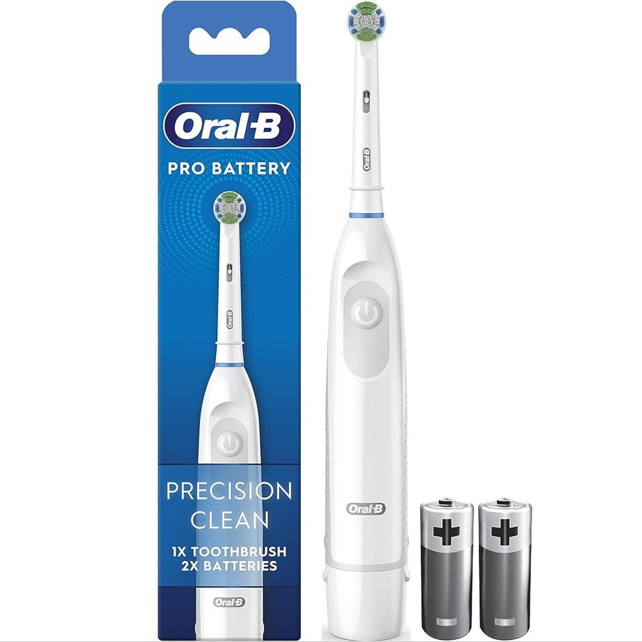Deeply clean your teeth and gums with the Oral-B Pro Battery battery-powered toothbrush. Removes plaque and surface stains to reveal a whiter, brighter smile!