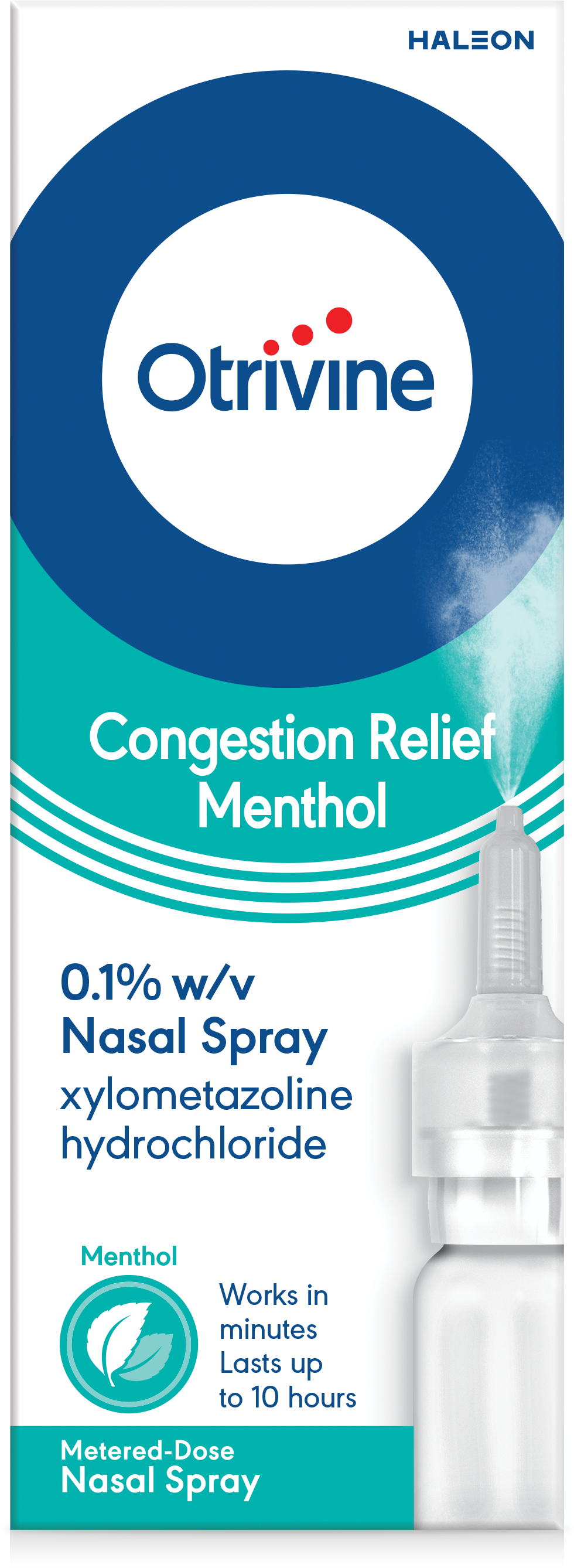 Otrivine Adult Mucus Relief Menthol 0.1% w/v Nasal Spray provides relief from the symptoms of nasal congestion due to colds, sinusitis and allergies, such as hay fever.