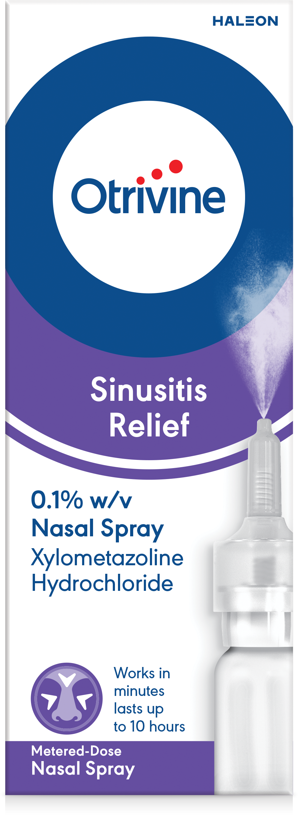 Otrivine Adult Measured Dose Sinusitis Spray delivers a measured fine mist of medication to the nasal passages with each application.
