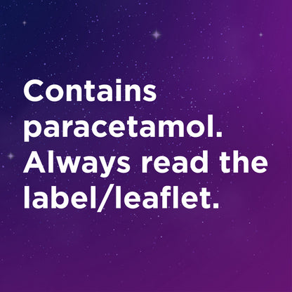 - Contains paracetamol for pain relief and diphenhydramine hydrochloride to relieve congestion and aid sleep