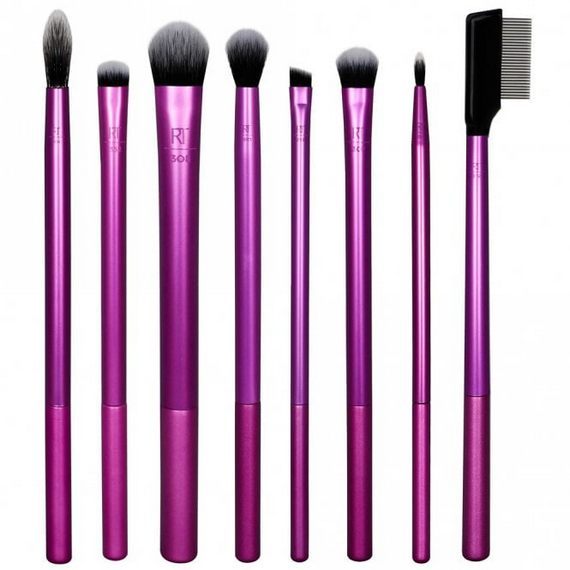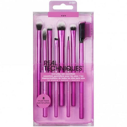 Real Techniques Everyday Eye Essentials Makeup Brush Kit contains eight essential brushes you need to help you create endless, flawless eye looks from natural to glam. The makeup brushes feature extended aluminium ferrules that are lightweight, easy to use and colour-coded with UltraPlush Synthetic Bristles.