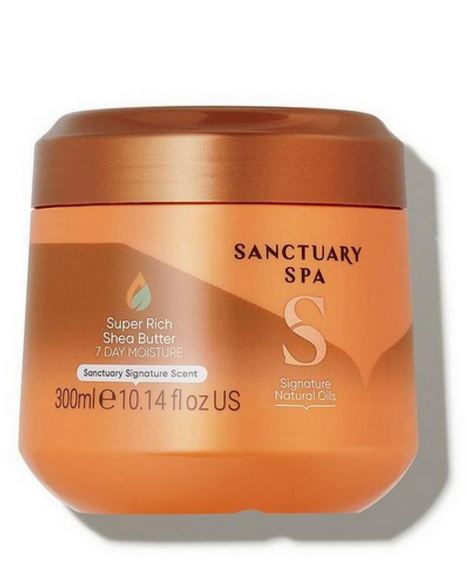 Sactuary Spa Super Rich Shea Butter is an ultra-nourishing blend of shea butter, indulgent cocoa butter and healing sesame seed oil that melts seamlessly into the skin to intensely hydrate, while our signature scent of Jasmine, Grapefruit & Vanilla eases the body and mind.