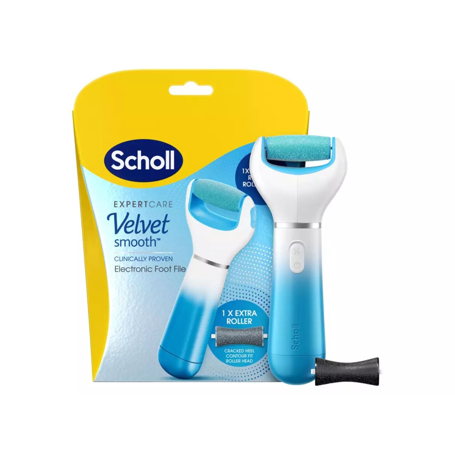 Effortlessly remove hard skin and exfoliate dry areas with the Scholl Velvet Smooth Electric Foot File. Designed for safe and effective foot care, it features Safety Stop Technology that halts the roller head if too much pressure is applied, helping to prevent injury and ensure gentle use.